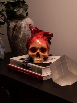 Skull Heart Halloween Atmosphere Props – Resin Horror Decoration for Your Spooky Setup