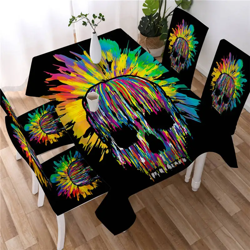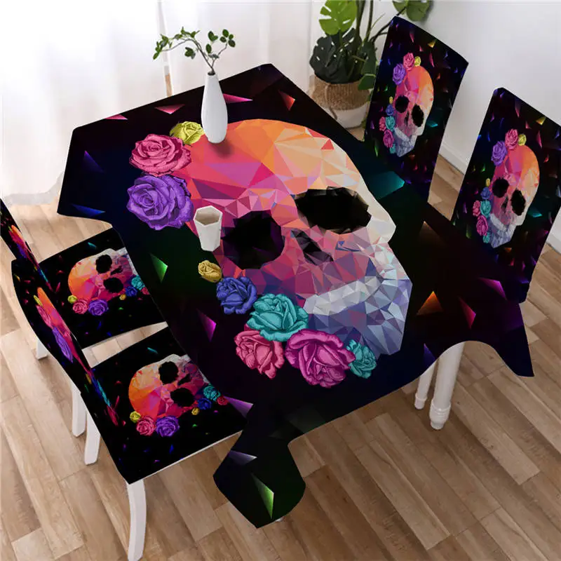 Elevate your table party or wedding decoration with our exquisite Black and White Gothic Skull Printing Table Cover. This rectangular table cover combines elegance, intrigue, and practicality, making it the perfect choice for your special event.