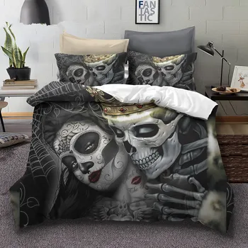 With its captivating design, the Skeleton Girl Bedding Set adds a touch of intrigue and style to any bedroom. The 3D print brings the skeleton girl to life, creating a visually stunning effect that is sure to impress. The attention to detail is impeccable, making this bedding set a true statement piece.