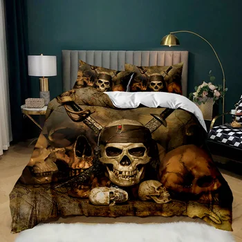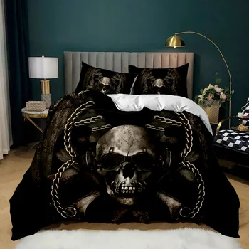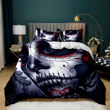 The horrible skeleton design adds an eerie yet captivating element to your bedroom decor. The intricate skull patterns create a visually striking scene that evokes a sense of gothic horror and dark allure.